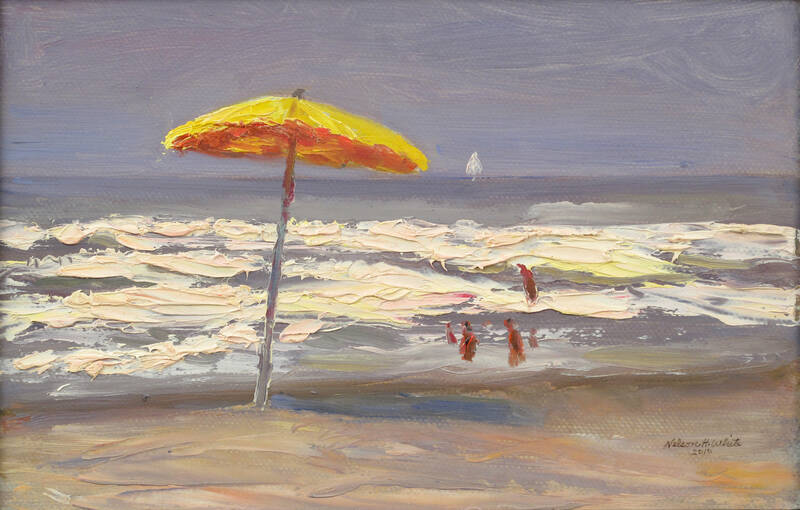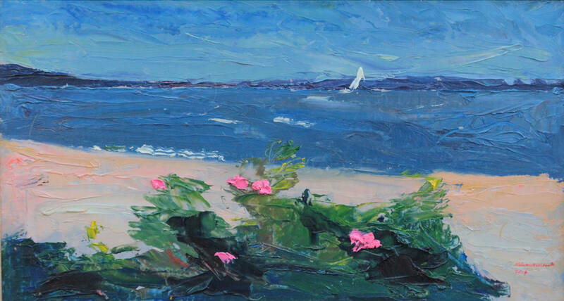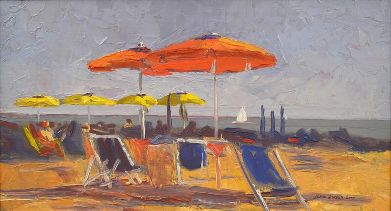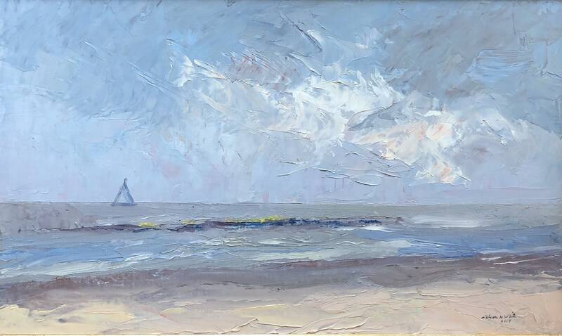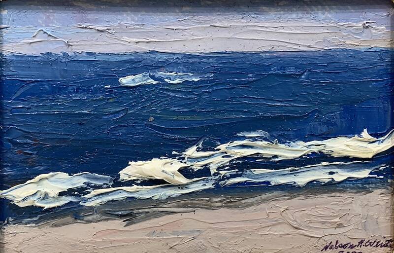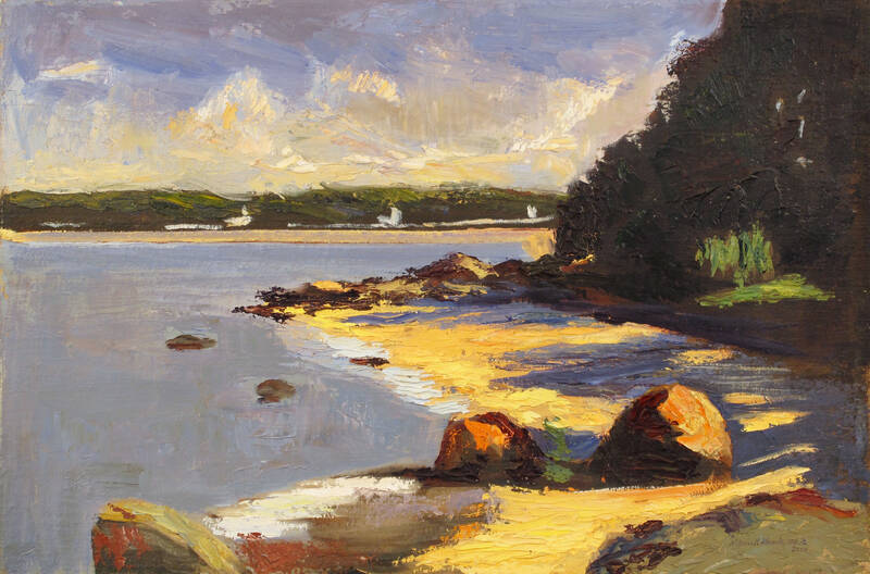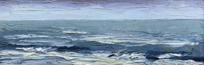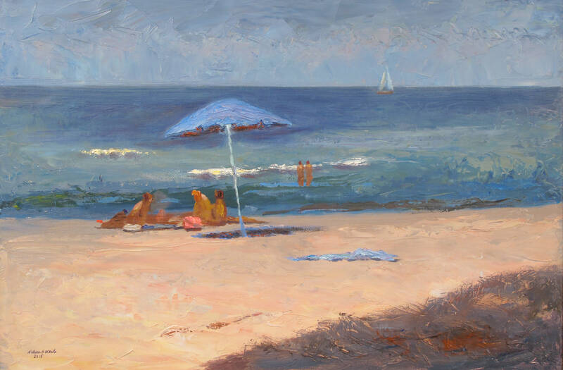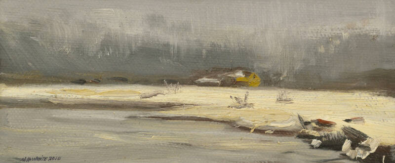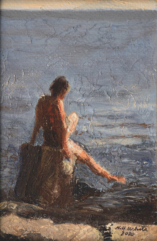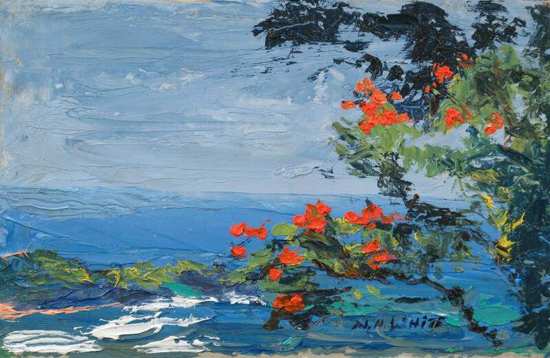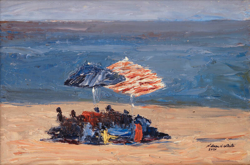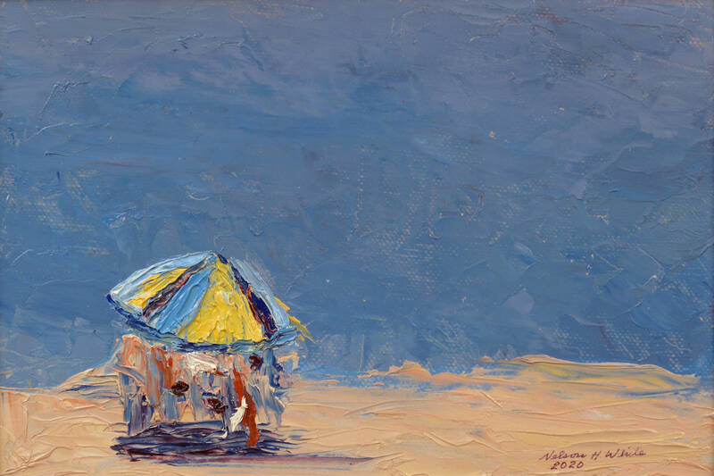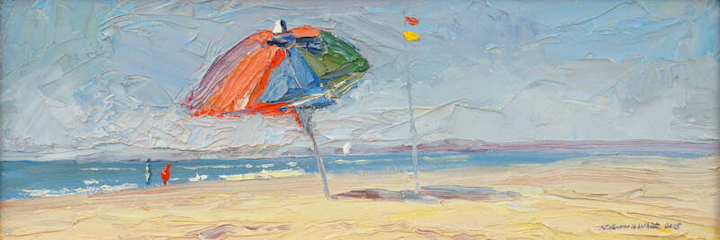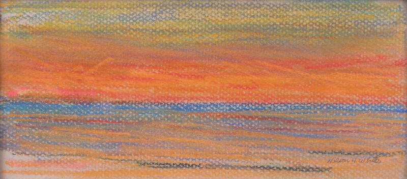 By the winter, we see that he pushed this move towards abstraction even further with "Coopers Beach Dec 27th" and "Sunset Seas and Sky, Feb 2021". These latest works feel like an apt culmination of over 70 years of painting out of doors, "en plein air". White, like many masterful painters as they enter their latter years, has eliminated unnecessary distractions from his compositions. After so many years of looking directly at color in nature, his mission has narrowed. In these latest works, White's sole focus has shifted to capturing the magic of the light, through pure color, deftly and liberally laid on his canvas, in wise yet still fresh marks.