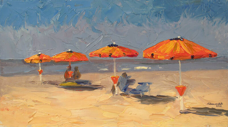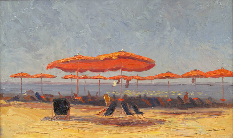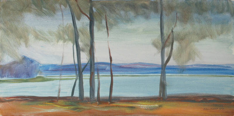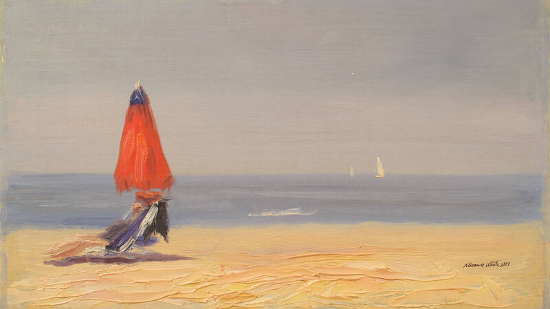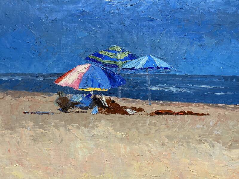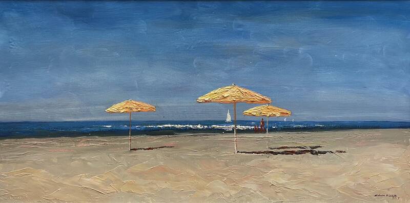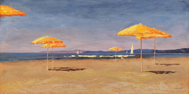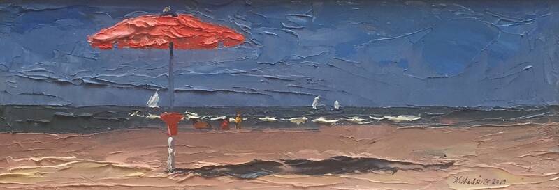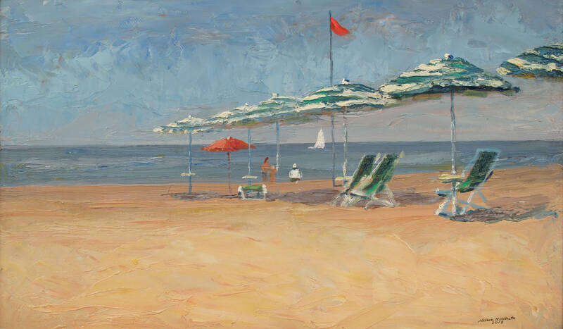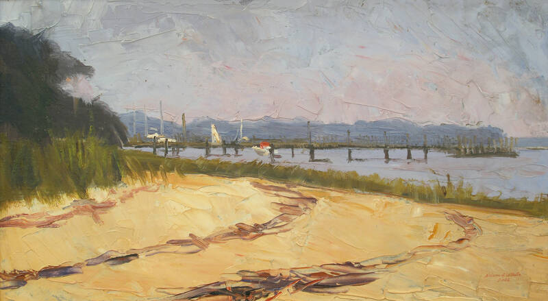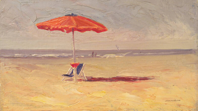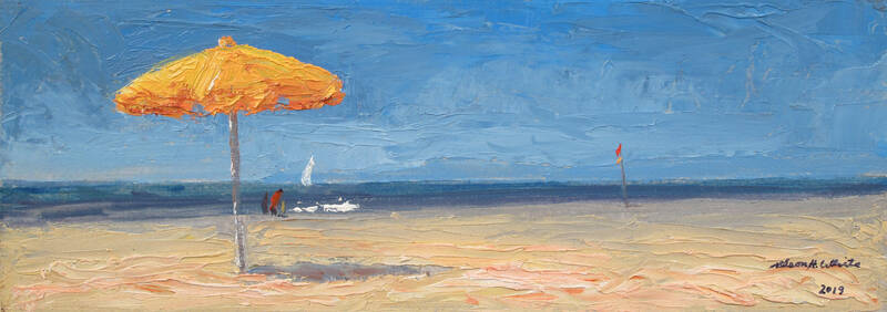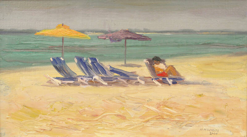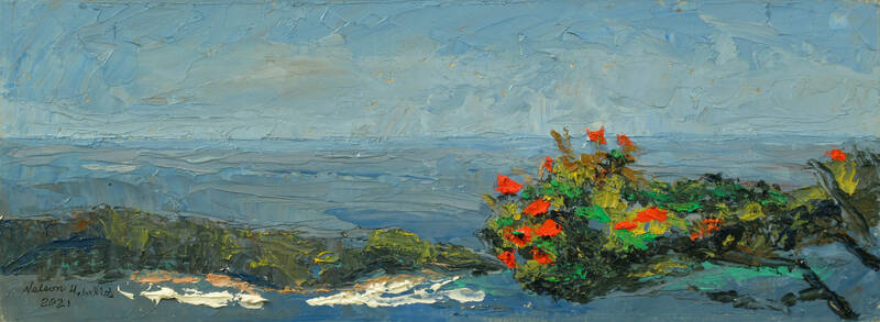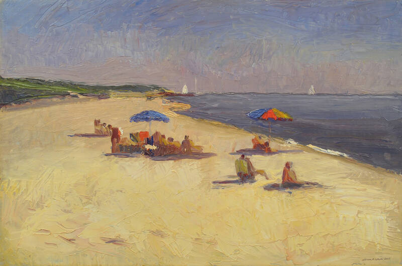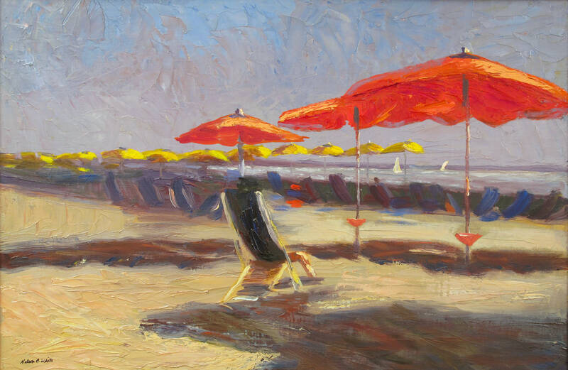 By the winter, we see that he pushed this move towards abstraction even further with "Coopers Beach Dec 27th" and "Sunset Seas and Sky, Feb 2021". These latest works feel like an apt culmination of over 70 years of painting out of doors, "en plein air". White, like many masterful painters as they enter their latter years, has eliminated unnecessary distractions from his compositions. After so many years of looking directly at color in nature, his mission has narrowed. In these latest works, White's sole focus has shifted to capturing the magic of the light, through pure color, deftly and liberally laid on his canvas, in wise yet still fresh marks.