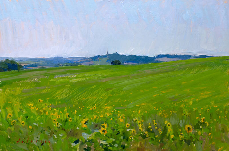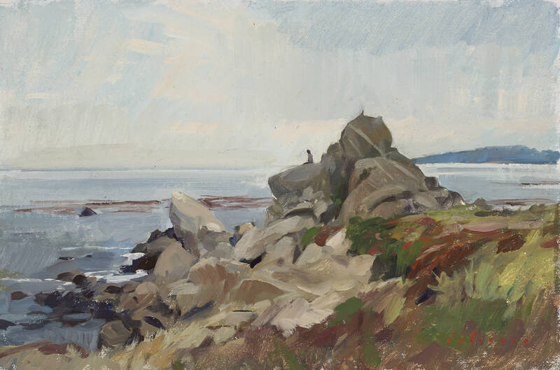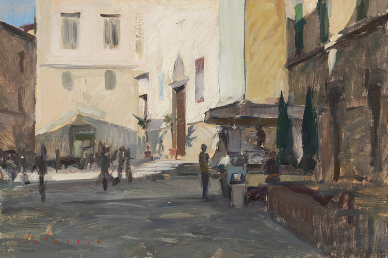 Marc Dalessio (b 1972, Los Angeles) despite being under strict quarantine for most of the pandemic, has been able to paint several stunning landscapes from his home in Portugal and while searching for his newest residence, in France. Revisting the lily pond, as other Grenning Gallery artists have been doing this year, Dalessio's latest large work called "Pond Near Laon" delivers on every count - beautiful colors, expert composition, shimmering with light. We also have several fabulous paintings of vast green fields glowing with sunny yellow flowers in the quaint countryside of Plieux. We are also very pleased to report that we have gotten our hands on some of his most prized small-scale plein air paintings of New York and coastal towns from the US to Europe. Especially notable is "Saxaphonist, Central Park" in New York and "Zadar, The Riva" in Croatia.