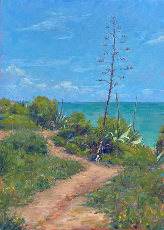Tina Orsolic Dalessio (b.1983, Zagreb, Croatia) wows us with her personal take on a field of flowers - abstracting the subjects as it bleeds beyond the edges of the canvas. She also delights us with some poignant landscapes in this show. Her recent move to France (from Portugal) will no doubt yield new and interesting work in the coming year.