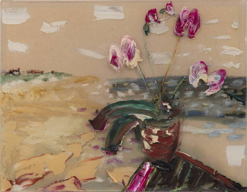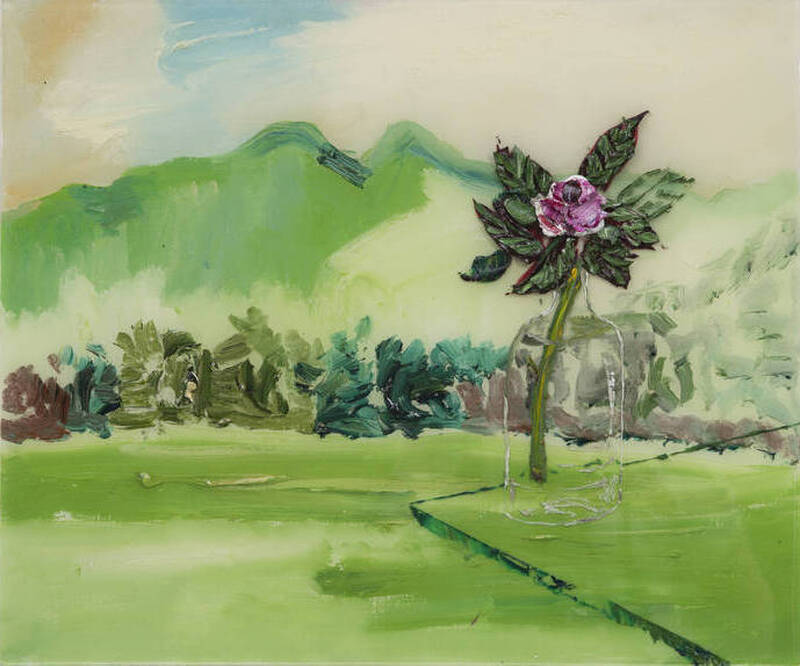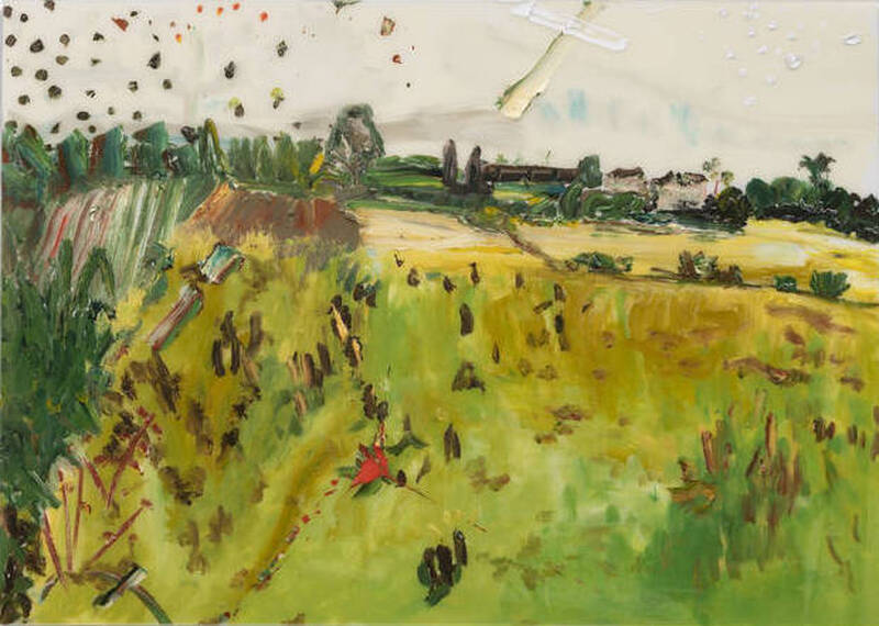 Yektai's work this year demonstrates how inspired he is by our local environment - ever expanding his creative ambit. In pure Grenning Gallery fashion, he found himself motivated to paint out-of-doors, or en-plein-air. We see the beginning of a series of local landscapes where the AbEx meets the Impressionist and the party begins. In a Surrealist overlay, Yektai integrates his florals into, and ONTO the plein air landscapes. We see hints of Van Gogh's early countryside drawings in "Parsonage Field" and then an explosion of luscious unrestrained fistfuls of smeared colored brushstrokes in "On the Hill". The latter technique is a direct homage to his own father's work.