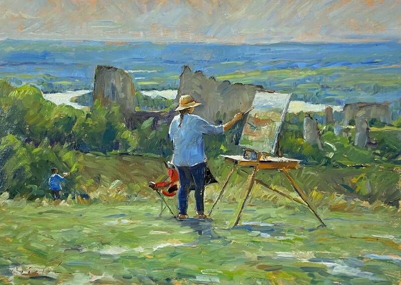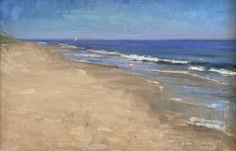 Marc Dalessio (b.1974, California) is one of the world's leading plein air painters according to Eric Rhodes, the publisher of Fine Art Connoisseur Magazine (among others). Dalessio, after three long pandemic years, finally returned to paint the East End of Long Island this summer! Although this was a quick visit, Dalessio was able to capture the delightful late summer light at Indian Wells Beach seen in the banner image for this show. He was also able to capture an interesting perspective of Sag Harbor's pier in "Boats on the Beach, Sag Harbor". Several seascapes created around Louse Point top off the fresh local landscapes, which combine beautifully with his recent plein air paintings of Morocco, England, Portugal and France. With his recent move to a small farming village in the southwest of France, we expect to see many more works out of his permanent studio space. Now that the pandemic is over, Dalessio will be able to travel to paint new subjects and work on larger studio works when home.