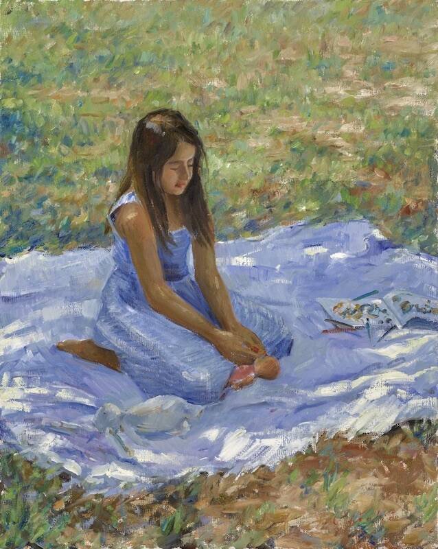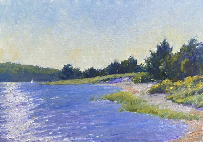 Tina Orsolic Dalessio (b. 1983, Croatia) has a wonderful series of new works ranging from plein-air landscapes, to still lifes, and even some interesting quick figurative works painted out of doors in natural light. Orsolic also travelled to the East End late this summer and was able to hit a lot of the great spots to paint. "Quiet Day on the Beach, Montauk", this summers largest, is a lovely painting of a small family enjoying the day. Orsolic was also able to paint the windmill in Sag Harbor and the lighthouse in Montauk. Orsolic's sensitivity and interest in color are becoming her trademark. Pinks, yellows and reds peek out of her landcapes like blinking lights embedded in the work, enlivening an otherwise modest landscape.