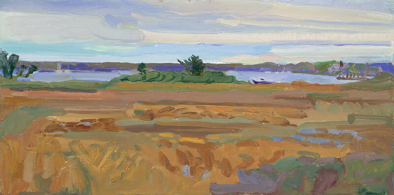 Throughout the rest of the series, light is the prominent subject. The changing of seasons meant that Carmody was able to experience a different atmosphere, and subsequently light effect, each day. The milky blue of Shelter Island Evening and the warm orange of Orange Clouds are the same location at different times of day. Carmody’s paintings demonstrate how, in a matter of minutes, light can completely transform a scene.