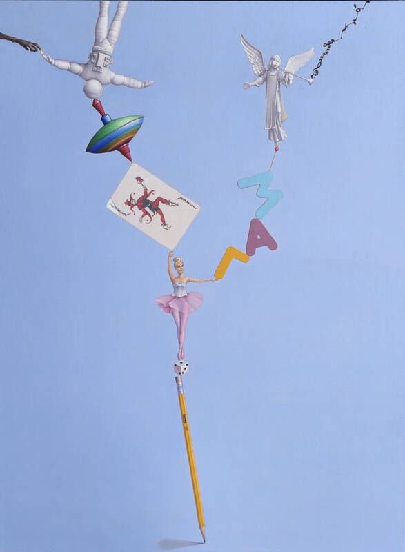 More than two decades ago, Anthony Mastromatteo (b. 1970 | Ohio) studied alongside Lamb at Water Street Atelier. Although he received the same training under Jacob Collins, Mastromatteo has taken his paintings to an entirely different realm. His work is technically refined, and beautifully composed, yet suffused with a deep knowledge of art history and philosophy. His paintings are not the typical structure for a realist painter, in contrast, they consist of bright colors, utilitarian props like masking tape, and usually an element of pop-culture. Irony is never lost on this artist, who cleverly declares that “Trompe L’Oeil was the first Modernist movement” and proves his claim via his own hyper-realist oil paintings which force the viewer to dive deep into their psyche; discerning reality from artifice in various subjects both foreboding and sometimes hilarious.