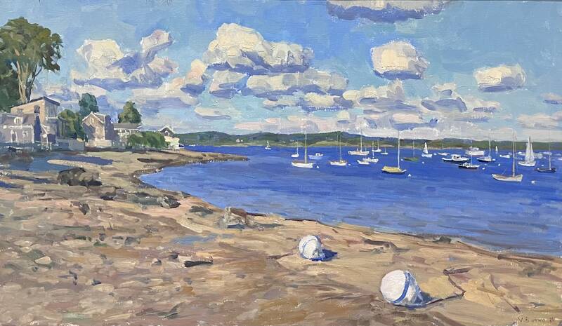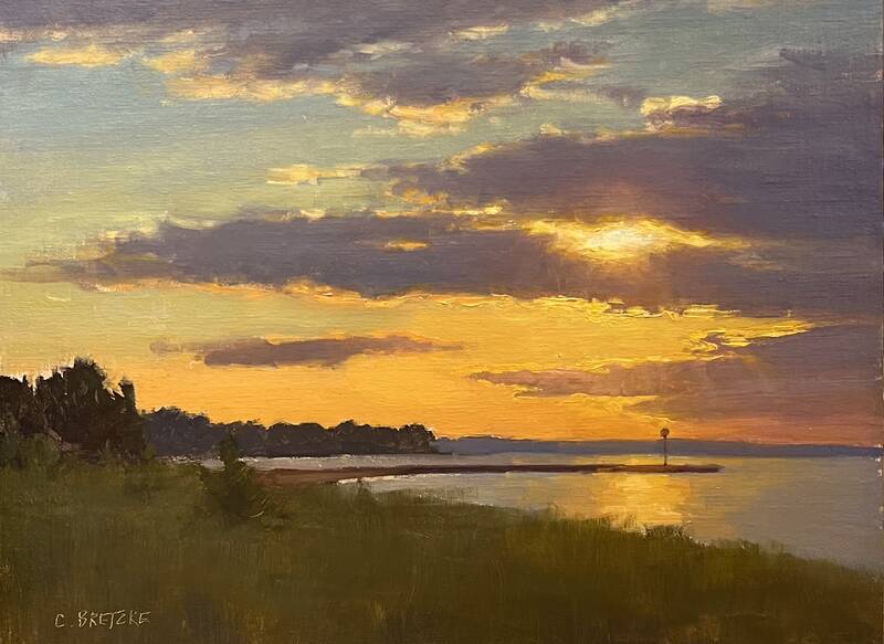 Carl Bretzke (b. 1954 | Minnesota) has been honing his craft as a painter for decades, without a degree from a classical atelier. Instead, Bretzke earned his skills while receiving training from Plein Air Painters of America’s signature artist, Joseph Paquet. Bretzke has won awards for his esteemed abilities as a plein air painter, but sometimes, Bretzke will take his work back to his studio. Swimming against academic traditions, Bretzke sometimes works from a photograph, which is fitting due to the cinematic quality of his compositions. As a young man, Bretzke worked part-time assisting a professional photographer. This experience explains his outstanding and consistent compositional sensibility. We are grateful for Bretzke’s ability to apply observational disciplines when he is back in his studio, as he has delivered three brand new Sag Harbor scenes despite not having been to Long Island since 2022.