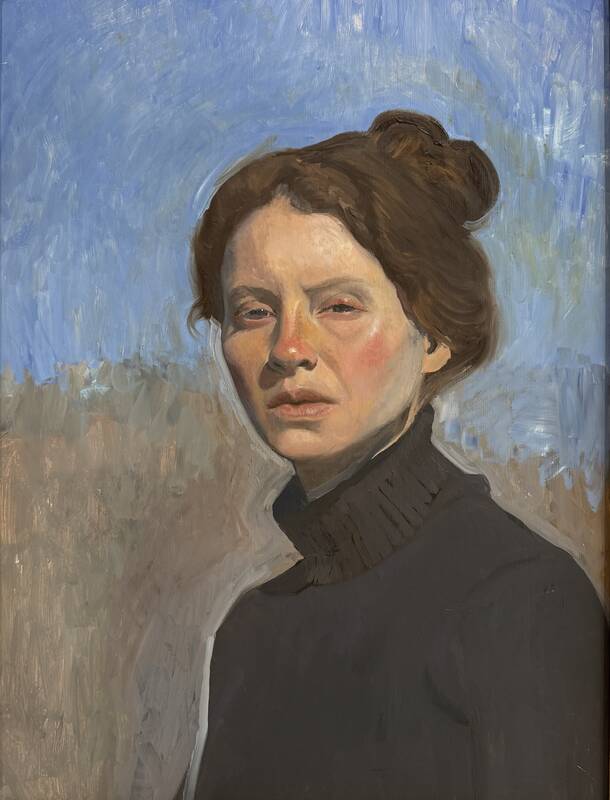 Grenning Gallery Manager, Megan Toy, has spoken with numerous artists about creating self-portraits – and the overall response has been apathetic. Some say, “It’s what you paint when you don’t know what else to paint”; others say, “I don’t want to look at myself”. It makes perfect sense because it takes a great deal of discipline to create a successful painting. The choice to have yourself as the subject can prove difficult, as it not only demands a specific sense of self-scrutiny and observation, but a sense of accuracy and, maybe above all, accountability. How critical is one to oneself? Are details exact or omitted? Glorified or exaggerated? How does the medium affect the overall image?