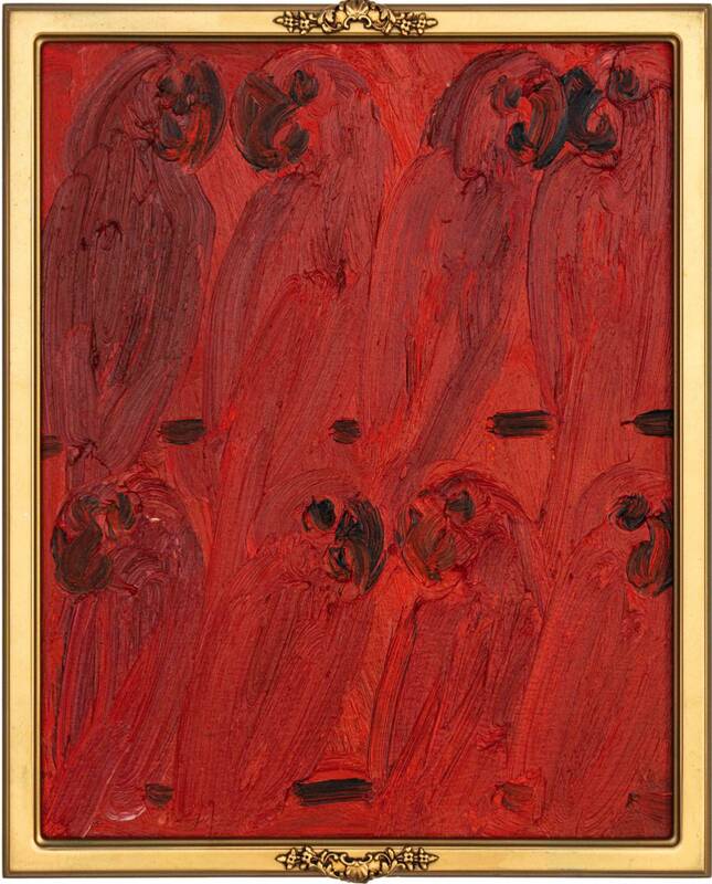 In Slonem’s larger works, the populated space of his paintings is both maximalist and minimalist. His iconic repetition birds, bunnies, and butterflies, often transcends ordinary subjects and transforms into a mesmerizing pattern. By filling a canvas with the same subject in this repetitious way, Slonem’s paintings become a mantra – quieting the senses, captivating the viewer with rich flora and fauna. These paintings are puzzles we can’t help but try to figure out. This approach to his subjects, combined with his many processes of handling the paint, results in truly hypnotic compositions, both aesthetically pleasing and critically engaging.