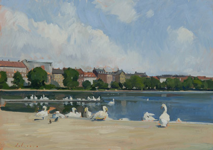 Marc Dalessio (b 1972), who painted most summers in the Hamptons since 1999, was born in California and currently lives in Croatia. He has been showing at the Grenning Gallery for 17 years. In the last few years, he has become one of the world's most respected bloggers on the traditional craft of painting. Dalessio's generosity with his deeply refined technical knowledge is well known to his online audience and fellow painters. Dalessio shares his insights, information, paintings, and sorrows with the public in real time. One can learn how to make oil paint, or watch a portrait being created in time lapsed video on his channel. (www.marcdalessio.com). One can also see his unending curiosity and an impressively sharp eye for great paintings, as he brings us along when he discovers a lesser known painter, usually from the early 20th century or late 19th century.