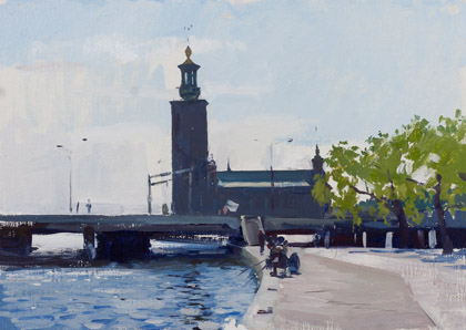 The rest of the show was difficult to curate due to the plethora of excellent oil sketches from Dalessio's travels. "Path in Maksimir" brings to life a wooded path and "Last Light, Rattvik" demonstrates his excellent draftsmanship. His choices of painting nature's grandeur as in "Hardanger Fjord", and everyday life in "Cafe on the Riddarholmen" show us Dalessio's keen eye for beauty and truth.