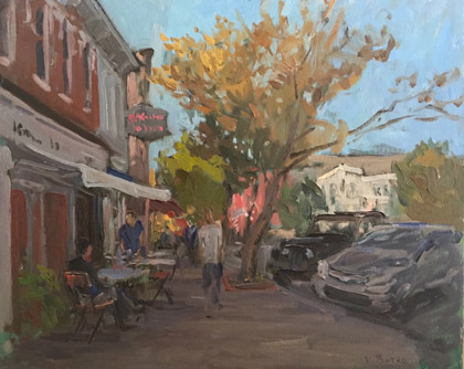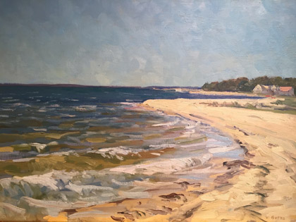 Ben Fenske and his Russian American Painting Alliance painted up a storm in and around Sag Harbor and selected paintings from this trip will be on view. Main Street, Sag Harbor is an important Fenske painting from this exhibition. With joyous, sweeping brushstrokes, and dabs of warm color, Fenske perfectly encapsulates a stroll through Sag Harbor on an Autumn day. The Sag Harbor Variety Store, a.k.a. the Five and Dime, stands tall, illuminated by the morning sun. A historical building which houses an honest, local family business, characterizes a quaint humility the Sag Harbor Community infinitely cherishes.