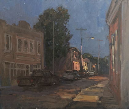 Laura Grenning, will have a few small paintings in this show, for the first time in ten years! Out with The Old is a sunset painting crafted late last winter down at Long Beach.
