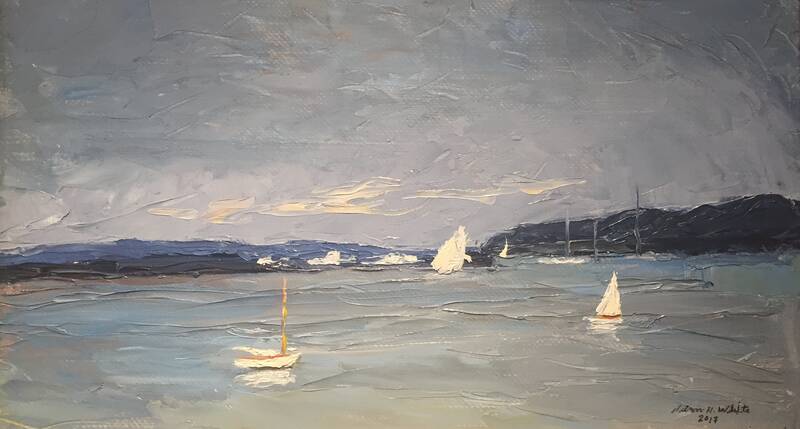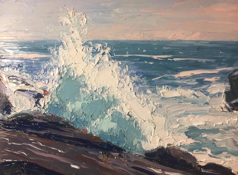 Returning for his third group show at the Grenning Gallery, is the young plein-air painter, Ben Lussier (b. 1988), presenting several new water-related paintings from his travels around the northeast over the last few months.