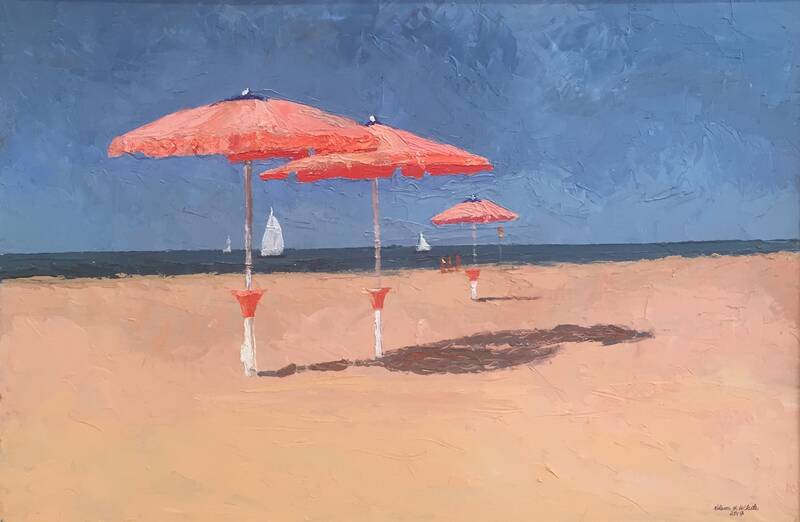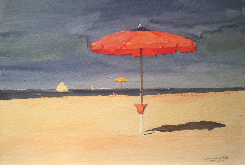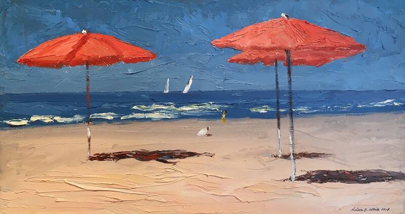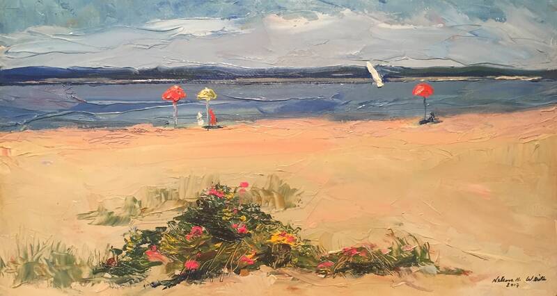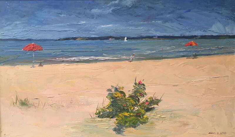 One of the most sought after local plein air painters of Shelter Island and Italian beach scenes, Nelson H White (b. 1932)is following up last year's solo show with a group of fresh paintings of his familiar subjects. White has adjusted his focus to paint in several smaller scale watercolors which flow with our water theme in this show.