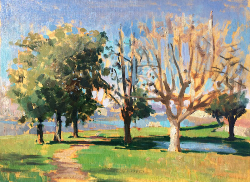Laura Grenning, the gallery owner, promises to step away from her gallery and parenting life long enough to paint a few new small works to show, as well as featuring a few still life's by the highly respected artist Sarah Lamb. And we will also show several works by one of our newest painters, who is busy and selling well here, and at other galleries around the country, Rachel Personett. Finally, we are pleased to exhibit for the first time, the work of Barbara Thomas, whose abstract compostitions reflect her connection to nature.