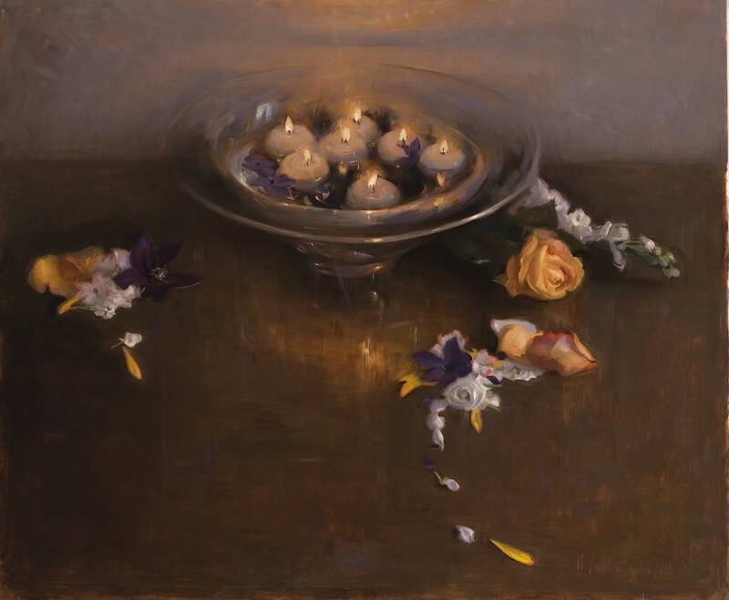 Melissa Franklin Sanchez(b. 1984, Warwickshire, England) grew up studying the humanistic arts; Music, Literature, Performing Arts and Ballet. A seasoned painter, wife and mother, and highly sought-after painting-instructor, Sanchez has a deliberate and sensitive technique that evokes mystery and romance. Her landscapes and candle lit still lives are unforgettable.