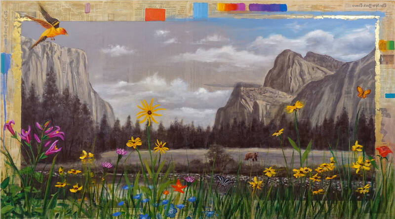 An avid consumer of the printed word in what is now an old fashioned medium - the newspaper - Straus has used the headlines from 2015 and 2016 as the background to his idyllic picture of a valley in Yosemite National Park in his brilliant "Old News: Yosemite". This juxtaposition of humankind's imbalances with nature's equanimity, enthused a rare realist's subtle political commentary of Nature, literally overshadowing man's smallness. Straus incorporates headlines from The United States' current administration, stridently rolling back long-standing environmental protections in pursuit of economic gains. It is an erroneous and ghastly attitude to hold; one that doesn't consider the health of the environment in coinciding with the health of the human race.